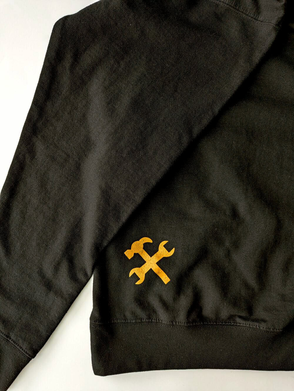 Don’t let those cold mornings hold you back from supporting your favorite cigar brand. This black Tradesmen Cigar Co. Hoodie is available in two weights, both high quality fabrics that will feel great on the job site or relaxing at home. On the upper back is the Tradesmen Cigar motto, “Work Hard Live Well” and there is also a tool logo on the lower rear.
